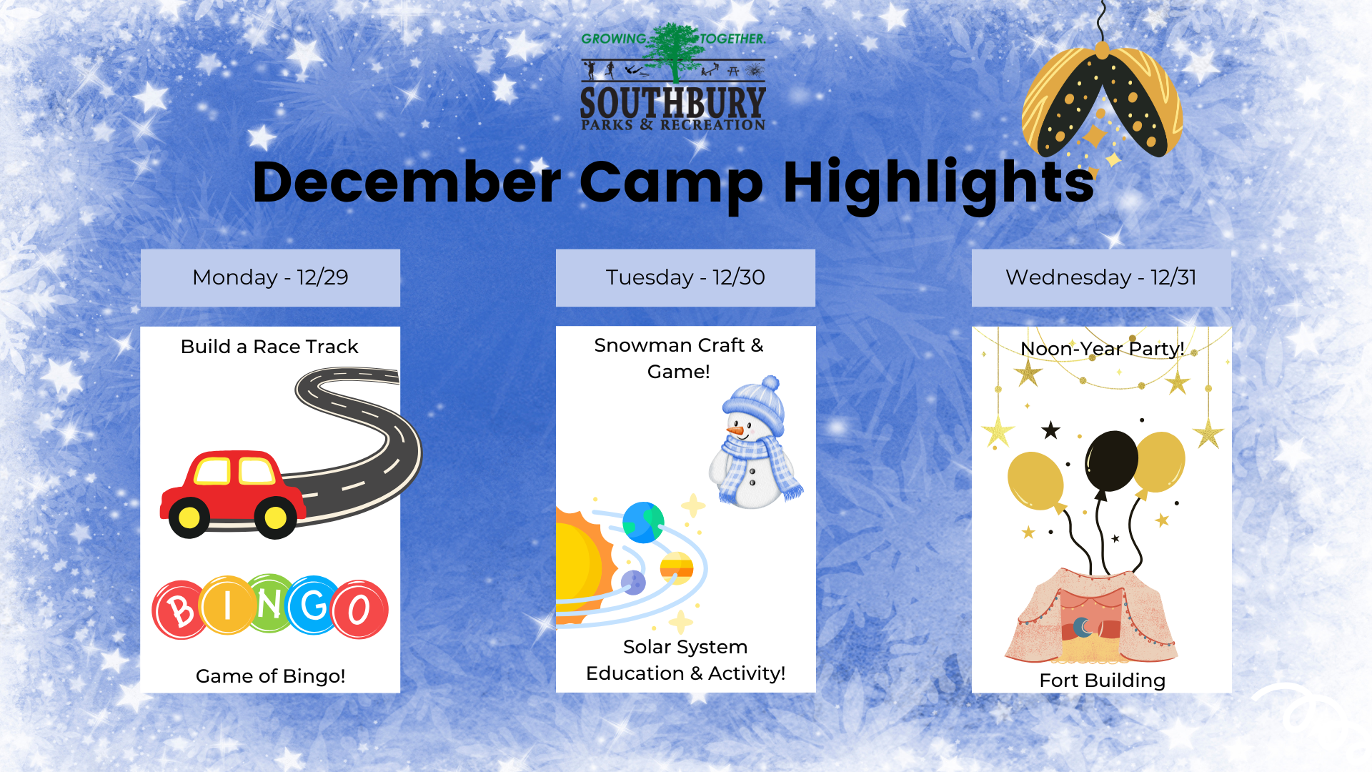 In order to serve you better, Southbury Parks and Recreation's programs are subject to change. All Parks and Recreation programs are covered by the Universal Disclaimer.